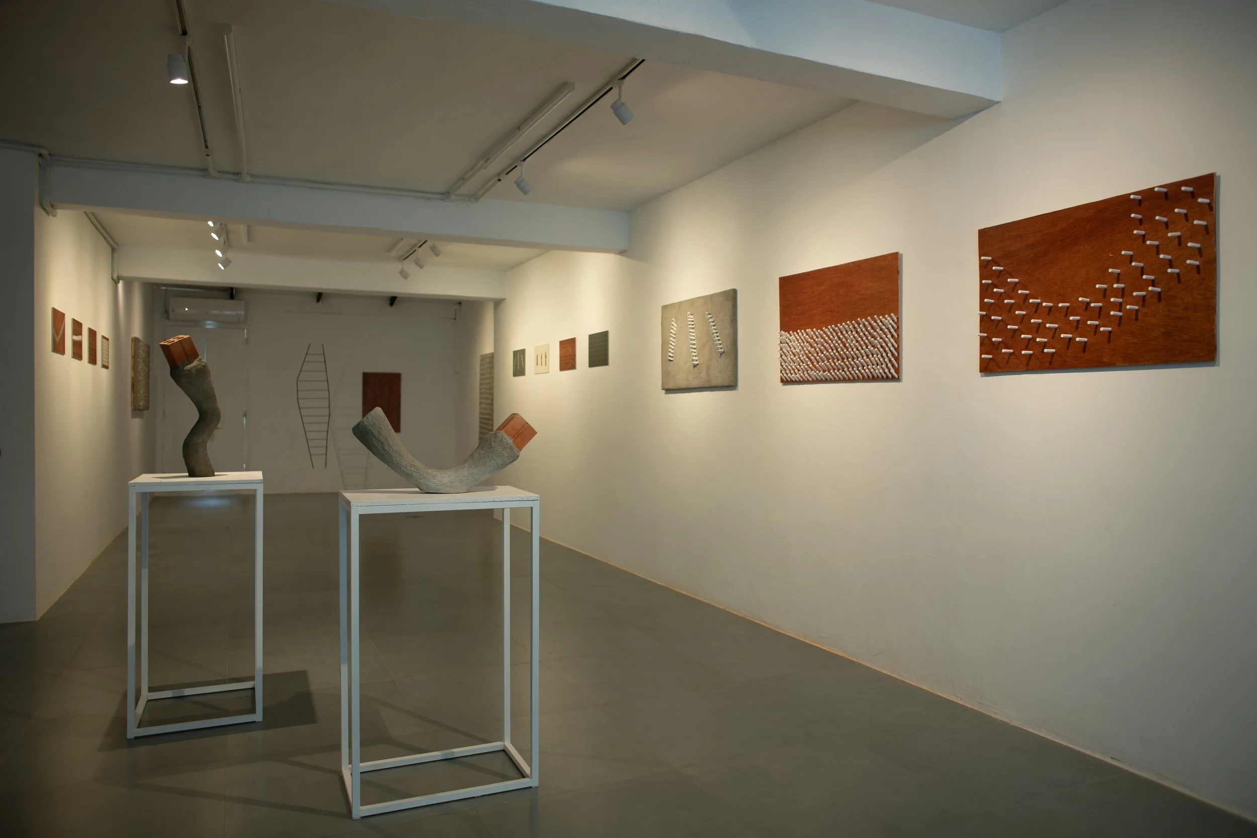 My work takes on different forms through the use of various materials such as bricks, cement, wood, metal, and chalk. etc. I explore the unique properties and characteristics of each material; bond with cement, form with brick, use wood as a ground, shape iron, and add geometry to harness the force of each property. I express meaning through simple enigmatic forms, and my contemplation of the materials' true nature informs my artistic process. To illustrate, 'Monk', I used bricks to form abstract humans that evoked the warm glow of the colour red in Buddhism. Brick appears red after undergoing heat, while also in buddhism; red reference to fire. I added a touch to traditional cultural images to reinforces my belief in the interconnectedness of all things.